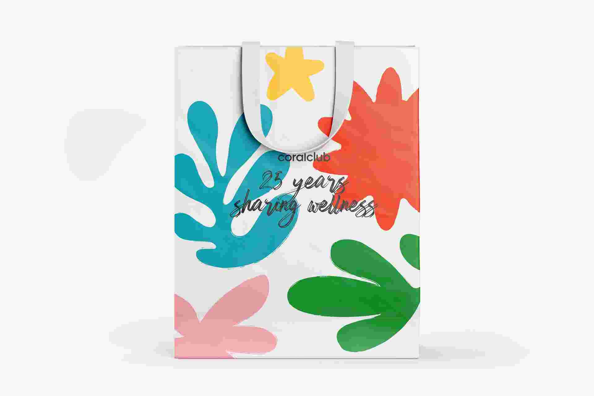The branded gift bag celebrates Coral Club's anniversary year and is perfect for delighting loved ones with self-care gifts.