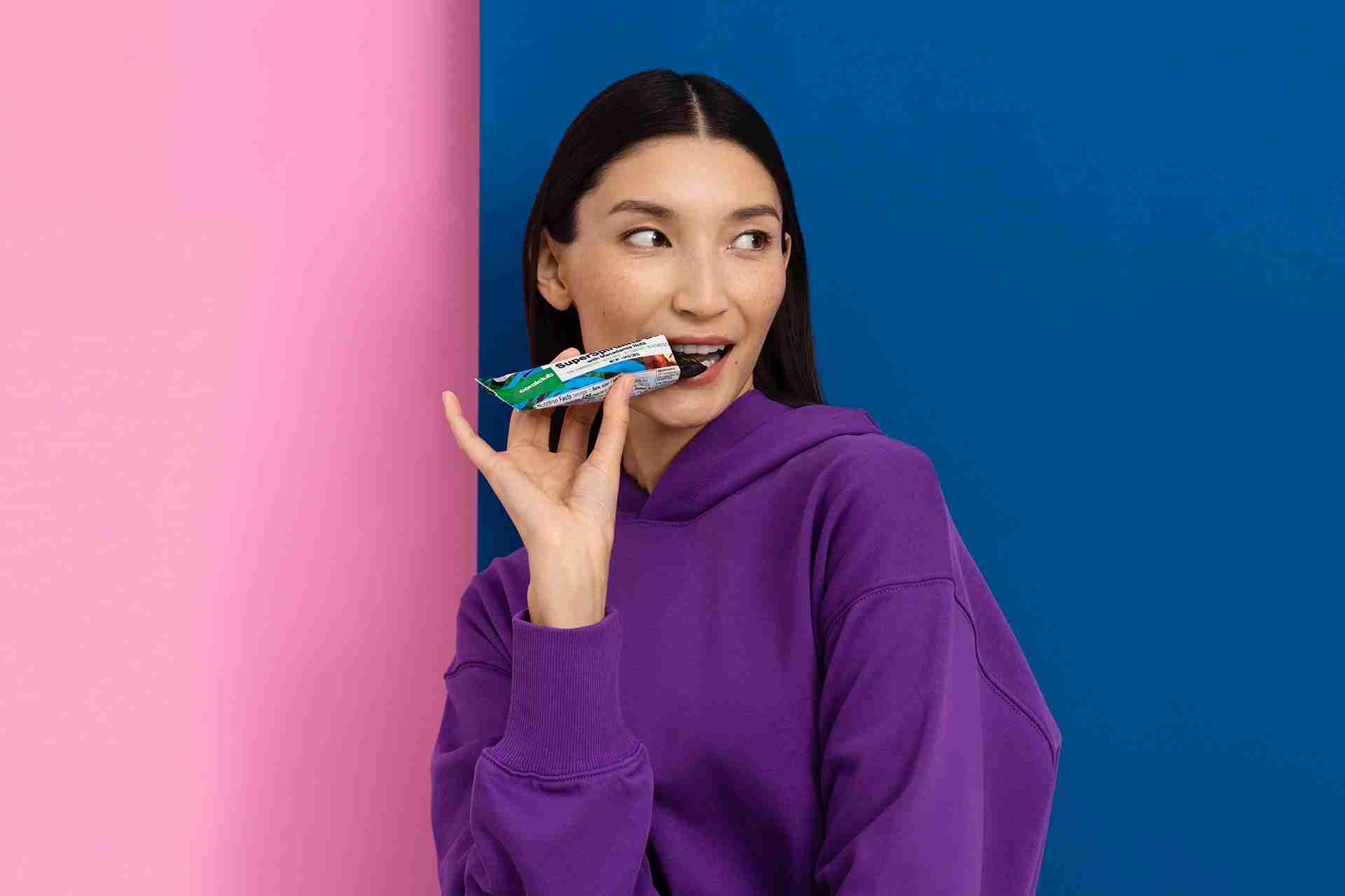 1 bar (38 g)% DV* Calories710 kJ / 170 kcal Calories from Fat70 Total Fat8 g 12% Saturated Fat0 g 4% Trans Fat0 g Cholesterol0 mg 0% Sodium15 mg 1% Total Carbohydrate19 g 6% Dietary Fiber3 g 12% Sugars13 g Protein5 g Vitamin A0% Vitamin C0% Calcium2% Iron8% Ingredients: Organic Cashew Butter, Organic Date Paste, Organic Agave Syrup, Organic Rice Protein, Organic Raisins, Organic Macadamia Nuts, Organic Spirulina, Organic Sprouted Flax Seeds, Organic Quinoa Sprouts, Organic Sesame Seeds. *Percent Daily Values.